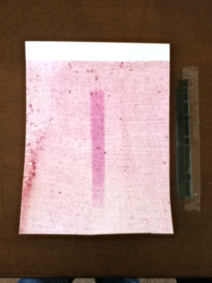 We cut the letters “R”, “B”, and “Y” out of red, blue, and yellow cellophane to place on a half sheet of paper to test the effect of color negatives on image formation. Our hypothesis was that the silver emulsion would be more sensitive to blue (shorter) wavelengths than red or yellow (longer) wavelengths.
