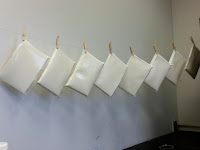 We concluded from the results of our previous photogenic drawing experiment that 2 coats of 12% sliver nitrate (AgNO3) over one coat of salt solution (NaCl) on Strathmore cold press watercolor paper yielded the best tonal variation. Therefore, we used this process to coat our paper that we exposed with color filters and objects.
